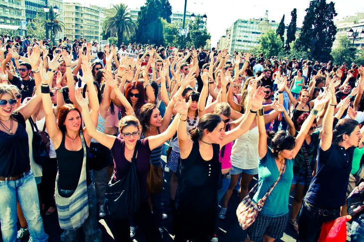 DEMONSTRASJONER: I Hellas har streiker, opprør og demonstrasjoner fra fortvilte innbyggere skapt stor bekymring i hele Europa. Landet er svært hardt rammet, og fremtiden er uviss. Ungdomsledigheten er oppe i 43,5 prosent. Bildet er tatt under en studentdemonstrasjon i Athen i 2011. Foto: odysseasgp