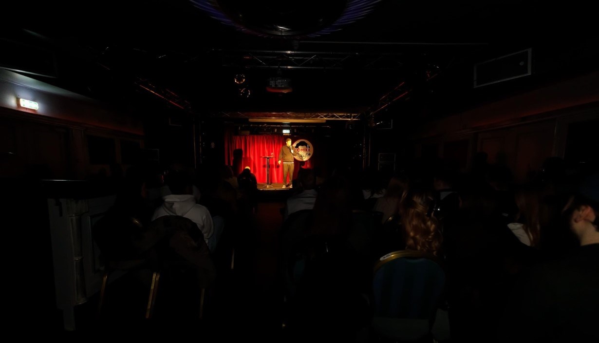 Komikk arrangerer stand-up hver lørdag kl. 20 i kjelleren på Old Irish Pub. Vi har alltid rabatterte billetter for studenter. Vi tilbyr alt fra "Mørkekjelleren", humor for mørke sjeler, til "Stafetten", en lett og ledig scene med mange komikere hvor hvem som helst kan prøve seg. Perfekt for å koble av og få en god latter!